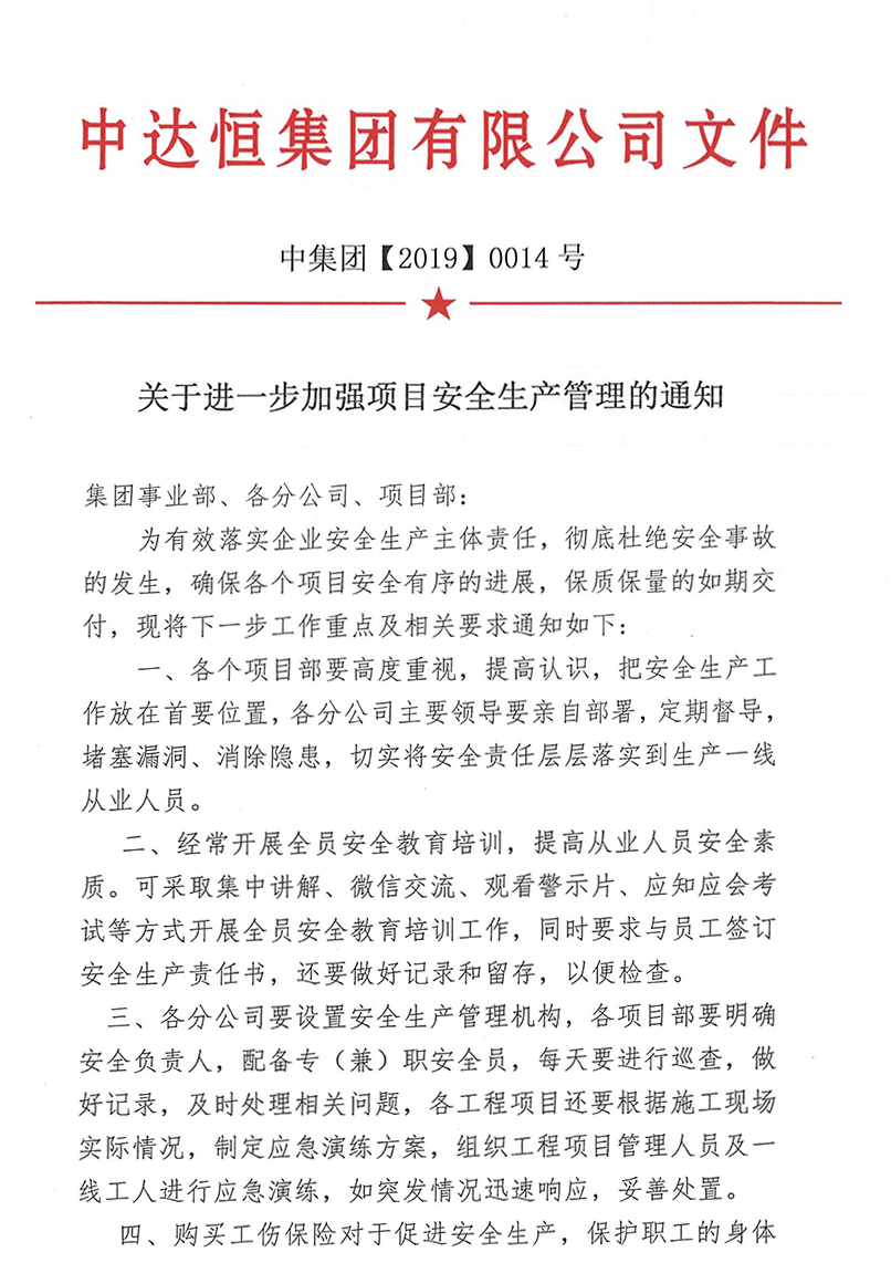 关于进一步加强项目安全生产管理的通知